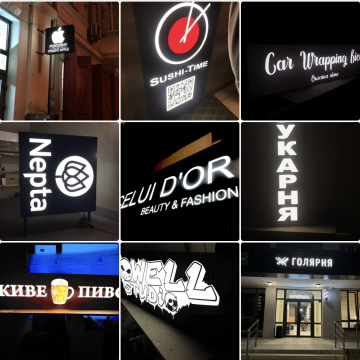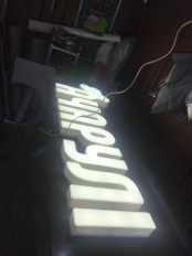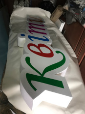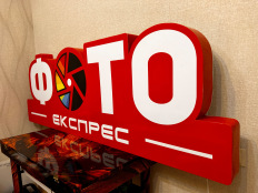 Після складання об'ємних літер з силіконовою герметизацією бічні частини букв, шви й з'єднання покриваються подвійним шаром фарби. Після перевірки букви монтуються на основний каркас за допомогою заклепкових з'єднань це досить надійно. Ви можете спостерігати рівномірне освітлення по всій площині літери, це один з важливих показників професійного виготовлення даної продукції. Досягнення рівномірного освітлення і максимальної яскравості досягається за рахунок правильного розміру бічних стінок об'ємної літери. Збірка літери виконана так, щоб букву на вивісці можна було розконсервувати для сервісного обслуговування без особливих витрат часу з подальшою, повторною силіконовою консервацією. Об'ємні літери для магазину. Вивіски часто контролюються за допомогою пульта дистанційного керування в стандартну комплектацію не входить.
