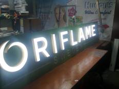 Об'ємна буква, яка виконана з псевдооб'ємом або об'ємом і закріплена на деякій відстані від основної, несучої панелі вивіски. В основному буква з контражурним підсвічуванням виготовляється з безпросвітного пластику з подальшим фарбуванням у задуманий колір. Букви з псевдооб'ємом не мають бічних стінок, світлотехніка фіксується на фрезерованій букві на задній стороні. Світіння виконується на основі вивіски, за рахунок чого під літерою виходить розсіяне світло.